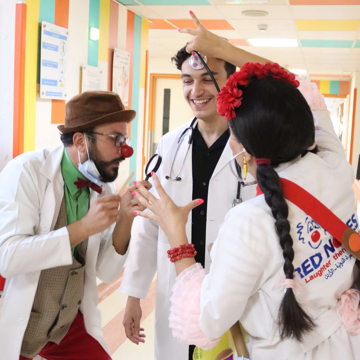 شخصية المهرج هي جوهر عملنا. المهرج شخصية عالمية يمكن للجميع التعاطف معها، ويعمل كجسر بين الفروق العمرية والثقافية والاجتماعية. من خلال التفاعل المرح، والموسيقى، والتمثيل المسرحي، نتيح للأفراد فرصة معالجة الخوف والحزن والقلق في بيئة آمنة وداعمة.