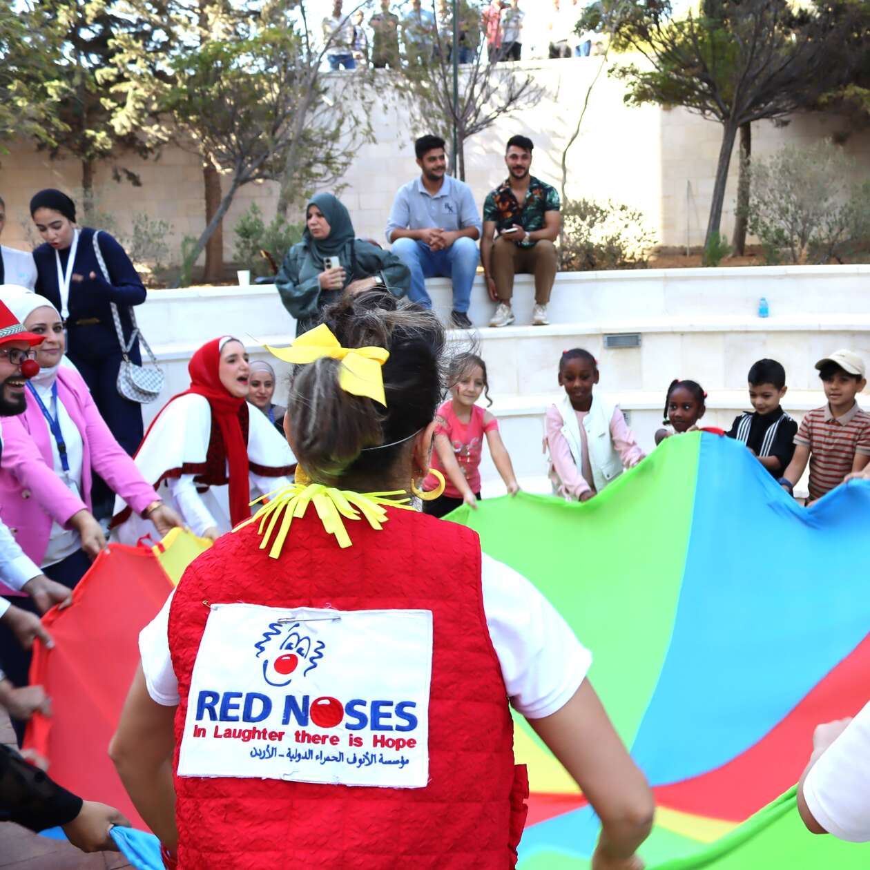 في الأنوف الحمراء – الأردن، نكرس جهودنا لمواجهة هذه التحديات من خلال قوة الضحك وفن المهرجين. نشهد يومياً كيف أن الضحك واللعب والتفاعل الإبداعي يمنح الأفراد المتضررين من الأزمات شعوراً بالراحة والأمل والارتباط، مما يجعل التعافي النفسي ممكنًا حتى في أصعب الظروف.