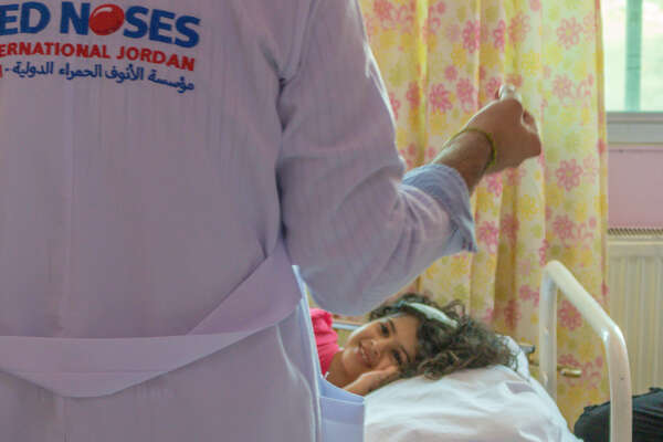A story by clown Ouja at the Jordan University Hospital